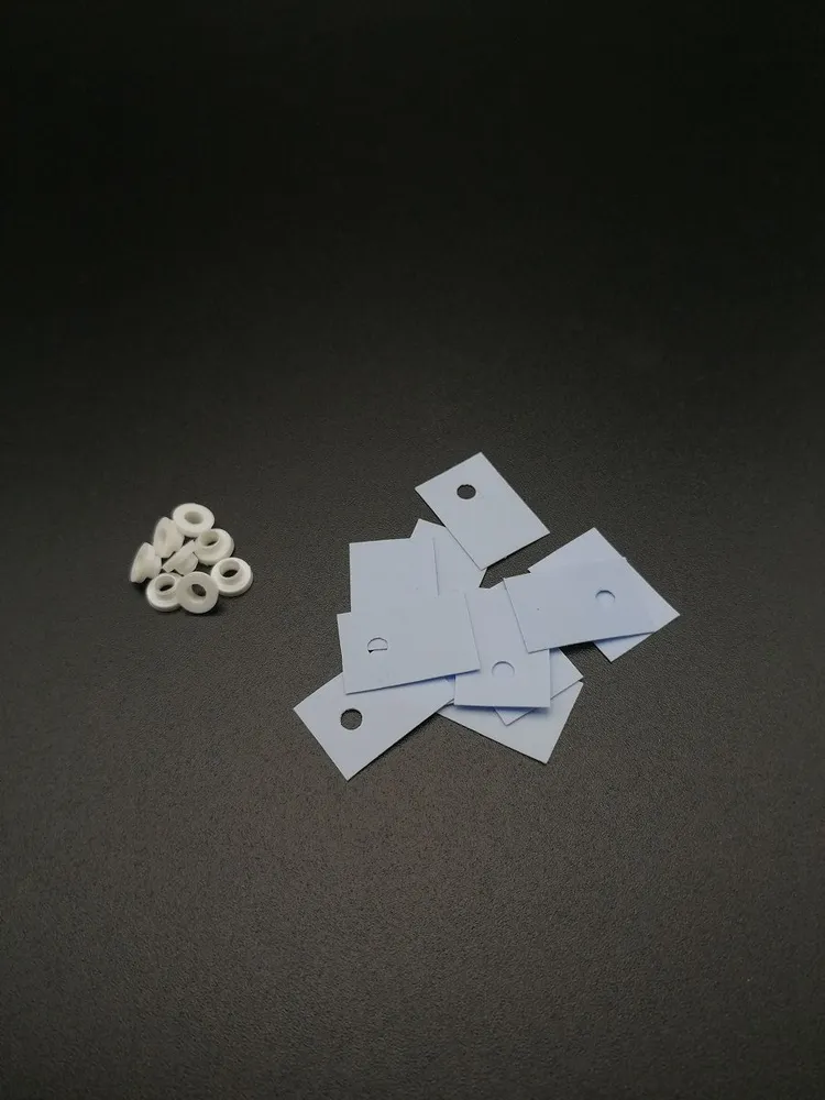 >прокладки из нитрида алюминия, или нитрида бора Про такие прокладки не знал. Когда обслуживал в предыдущий раз, там снаружи корпуса под винтами, которые прижимают планку с транзисторами к корпусу, были шайбочки из какого-то такого, как я тогда решил, пластика. Я их выкинул. Они для чего-то важного нужны? Зачем они там?