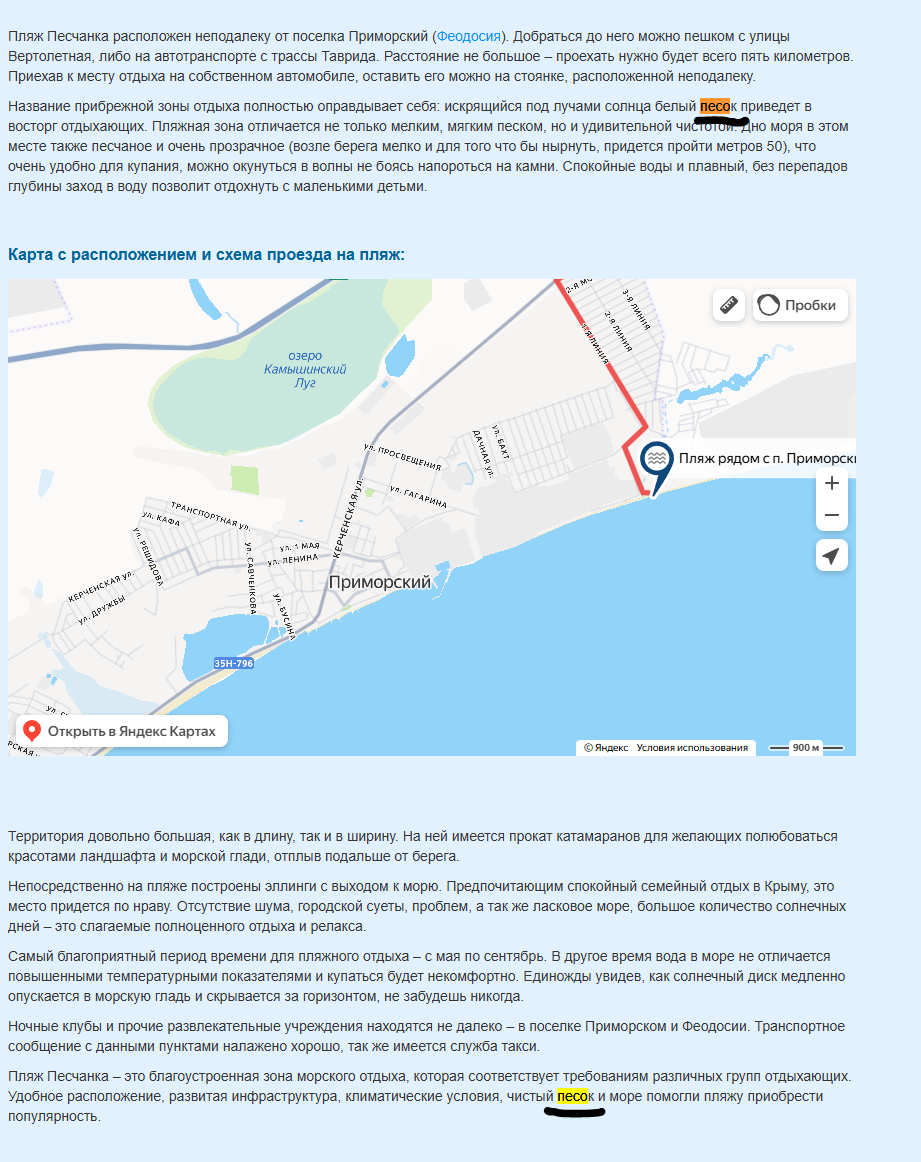 >>1634737 (OP) В июне ехать рановато. Идеально в июле для купания. В августе будут проблемы купить билет обратно. GPS глушат. Интернет по ночам отключают в том числе и 2G. Западный и Северо-Западный Крым сейчас засран военными. Они вырыли на пляжах норы в которых прячутся, растянули колючку и не пускают даже на официальные пляжи с 20 вечера до 7 утра. Медуз меньше на Восточном берегу (сравнение проводилось между пляжами где нет противомедузных сетей). Вода прозрачнее на Восточном берегу. Азовское море менее соленое и более мелководное чем Черное. В некоторых местах таких как южная часть косы Арабатская стрелка у берегов коктейль из водорослей в котором противно купаться. Вообще если писать о косах, то они перекрыты по всему Крыму. Не перекрыты только где живут люди. Морских пляжей состоящих только из песка в Крыму нет. Не ведитесь. То что они называют песком на самом деле отшлифованные осколки раковин моллюсков.