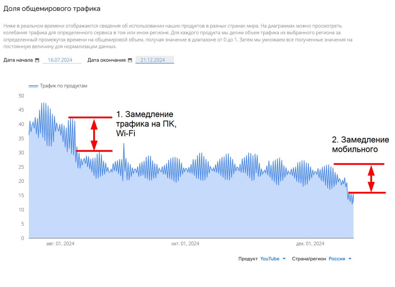 Он подчеркнул, что ведомство не наблюдает ухудшение пользовательского опыта в связи с замедлением YouTube. «Мы видим, что тот трафик, который YouTube теряет, половина этого трафика приземляется на российские площадки», — отметил Шадаев.