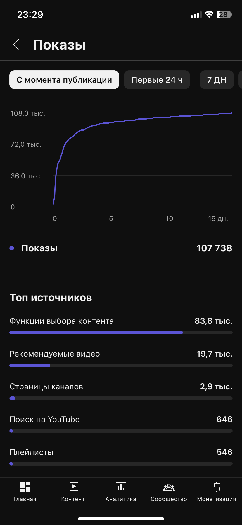 Аноны, тут такая ситуация, и нужно ваше мнение, а то я никак не додумаю сам. Начало мне в шортсах выдавать вот этот канал https://www.youtube.com/@plenka_story и статистика у них вроде хорошая, с мая 24 года набрали 44к подписчиков, последние шортсы набирают довольно много, а скачок у них начался где-то с сентября уже судя по сошалблейду. То есть они выкладывали по два-три шортса в день, сделанных с каким-то качеством, и уже через четыре месяца у них попёрли хорошие цифры. Мне интересно, потому что я в 23 году тоже сделал канал с шортсами про историю всякую, но у меня визуалом выступал нейросетевой кал, и я за полгода 10к только набрал еле-еле Вот у меня и выходят вопросы, которые я осмыслить один не могу: 1. Вот они постят два шортса в день с текстом, живой озвучкой и визуальными эффектами, то есть уже походу целая команда со старта - и это секрет успеха? Количество и качество? 2. А какие у канала с шортсами вообще профиты? Только партнёрка? Ждать рекламу? Казики с реферальными ссылками на такую аудиторию не пропиаришь ведь.
