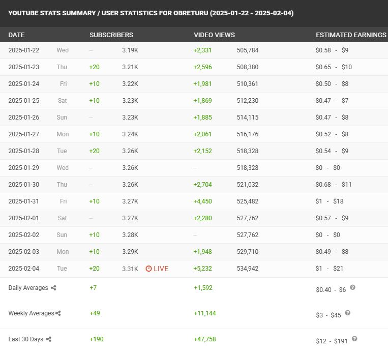 >>2314144 Примерно за месяц. На шортах вышел на просмотры от 5 в сутки примерно через 2 месяца нулевых просмотров, а там уже капало по 50 к сабов в день что очень хорошие цифры, то есть буквально за 10 дней буст был сильный с 100 к до 600-700 к, а потом в течение ещё месяца до ляма дошло. Потом просмотры спали и теперь канал мертв хотя там и висит 1,3 ляма сабов.