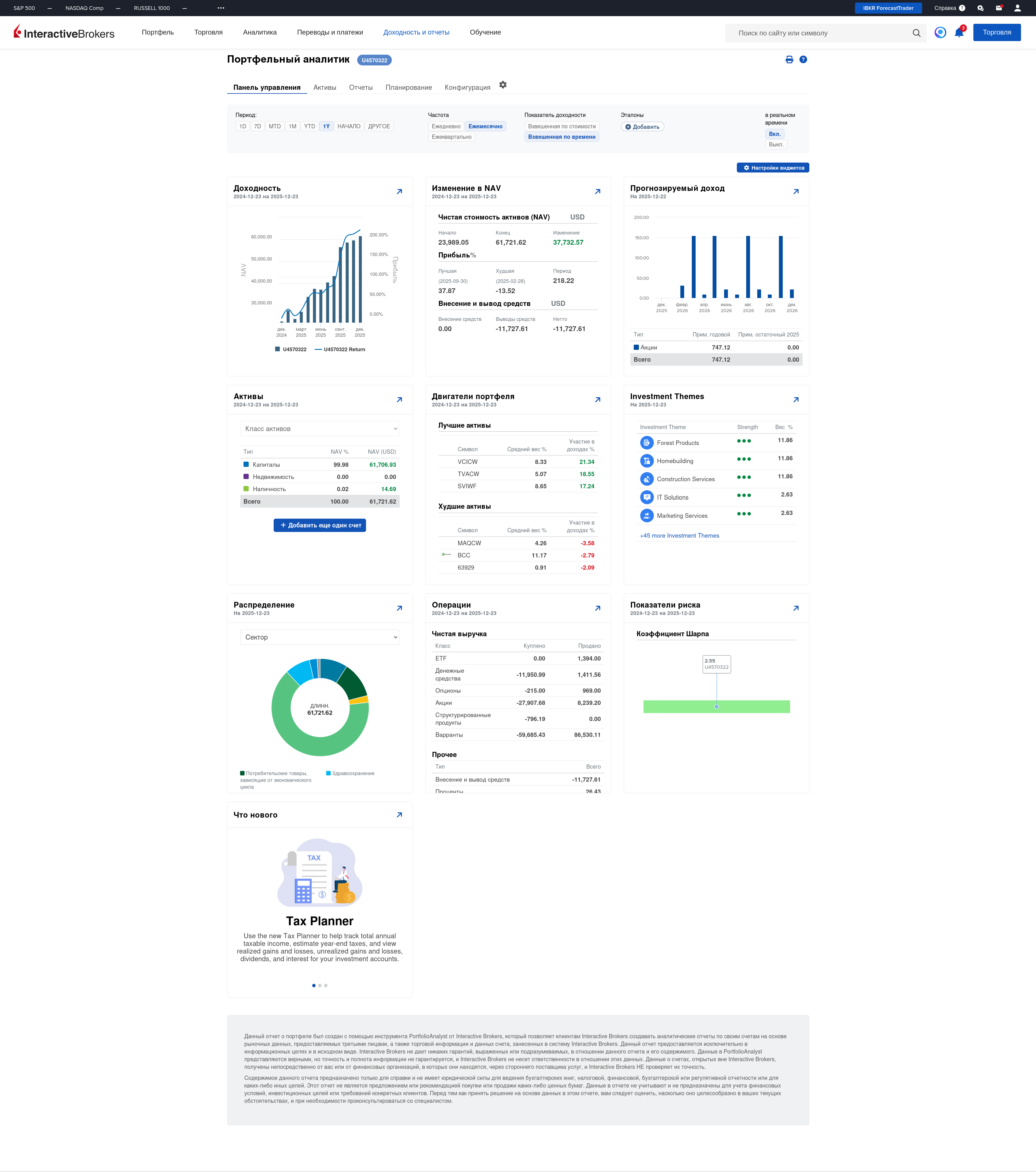 Баланс $61,720 (+157.29% годовых или +$38,774,34 за год, вывел $11,727.61). На начало года: $23,500. Максимальная просадка: -13.52%. Дивидендов собрано за год: $608. Цель на 2026-ой год: $100,000.