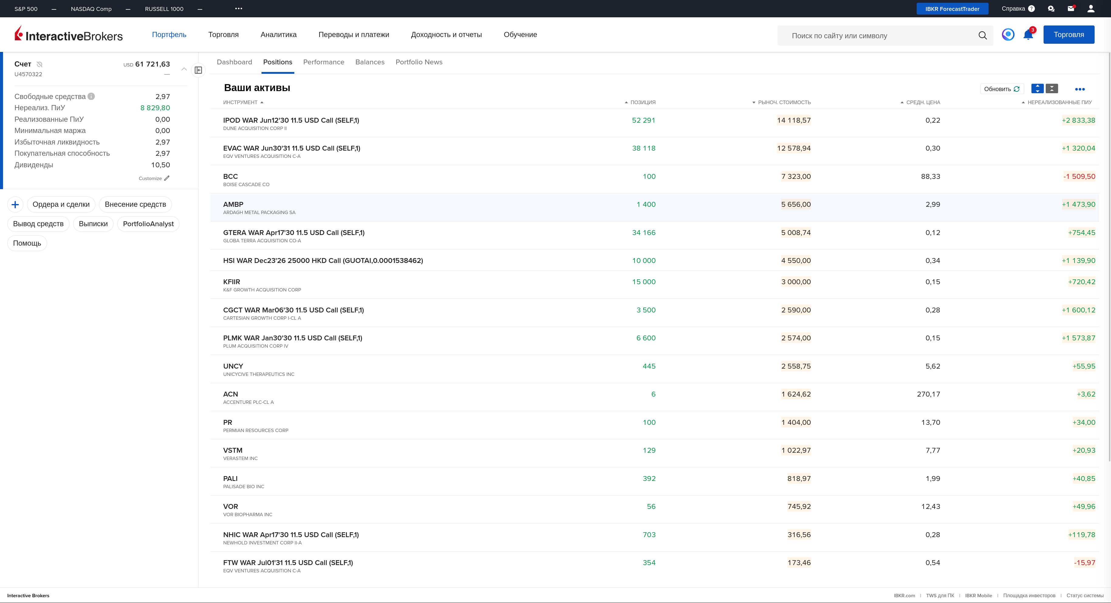 Итого сейчас 297к варрантов в портфеле. В минусе по CAPT/MAQC, надеюсь отрастёт со временем.