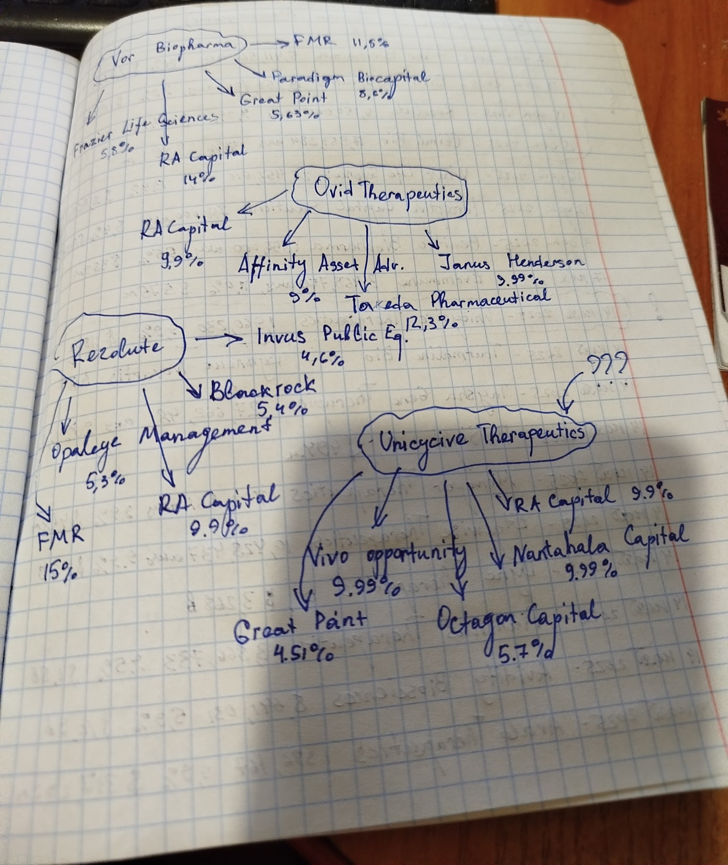 Далее я сравниваю числа с графиками, смотрю проценты владения, столько инстуционалов держит этот самый биотех. А циферки там довольно интересные. Я видел как фонды влошивали $400 лямов и через месяц-другой делали $800 лямов. Если один и тот же биотех держит несколько фондов - например Vivo + RA Capital + Nantahala, то это идеальный бычий сигнал. Смотрю презентацию для инвесторов. Там обычно 8 когорт - они идут от маленькой дозы к большой. И когда пишут что препарат в 3-ей когорте показал эффективность, значит что препарат хороший, злой. Разъебёт все болезни к хуям.