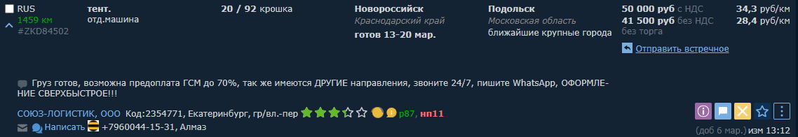 Можно конечно играть в рыбалку на АТИ. Но ставки сейчас ну очень низкие из за большого количества промежуточных выгодоприобретателей в лице мелких логистических перекупов.
