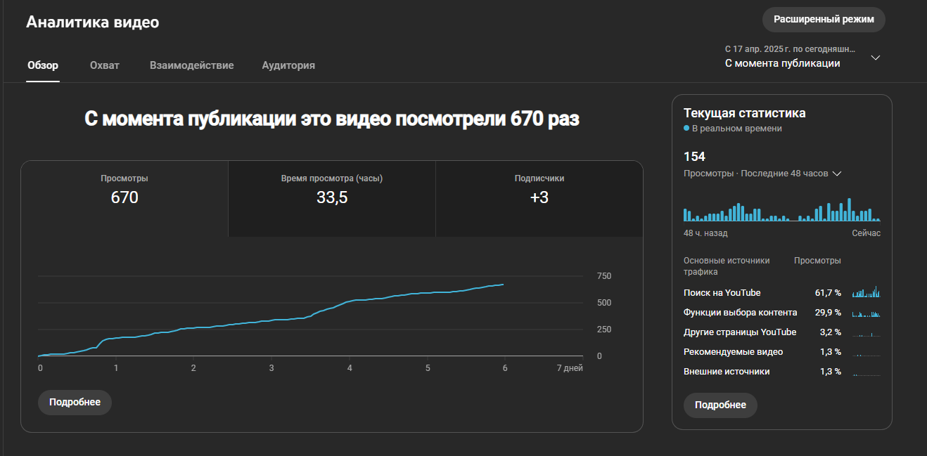 >>2357972 Это мое третье видео (на этом канале). Первое набрало 49к просмотров с продолжительностью 15 минут. Второе набрало 1700 просмотров с продолжительностью 5 минут. Вот я и пытаюсь понять, почему 5 минутное видео не взлетело, а 15 минутное взлетело. Как-то зависит ли продолжительность