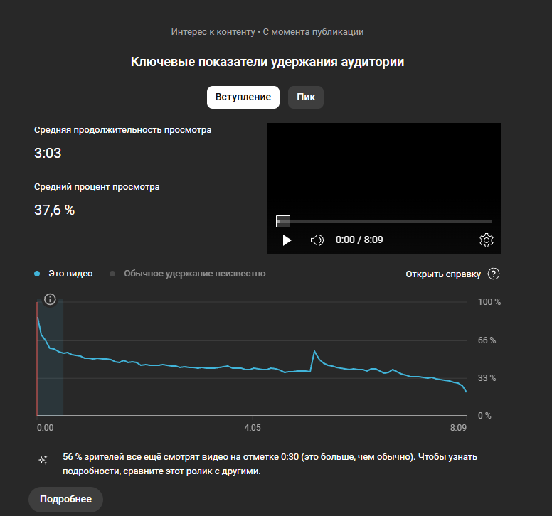 >>2389525 Ну короче видос разбанили, алгоритмам пизда походу, очень мало показов, хотя срт и удержание норм. Еще этот хуесос пришел срать коменты что опять страйк кинет лмао.