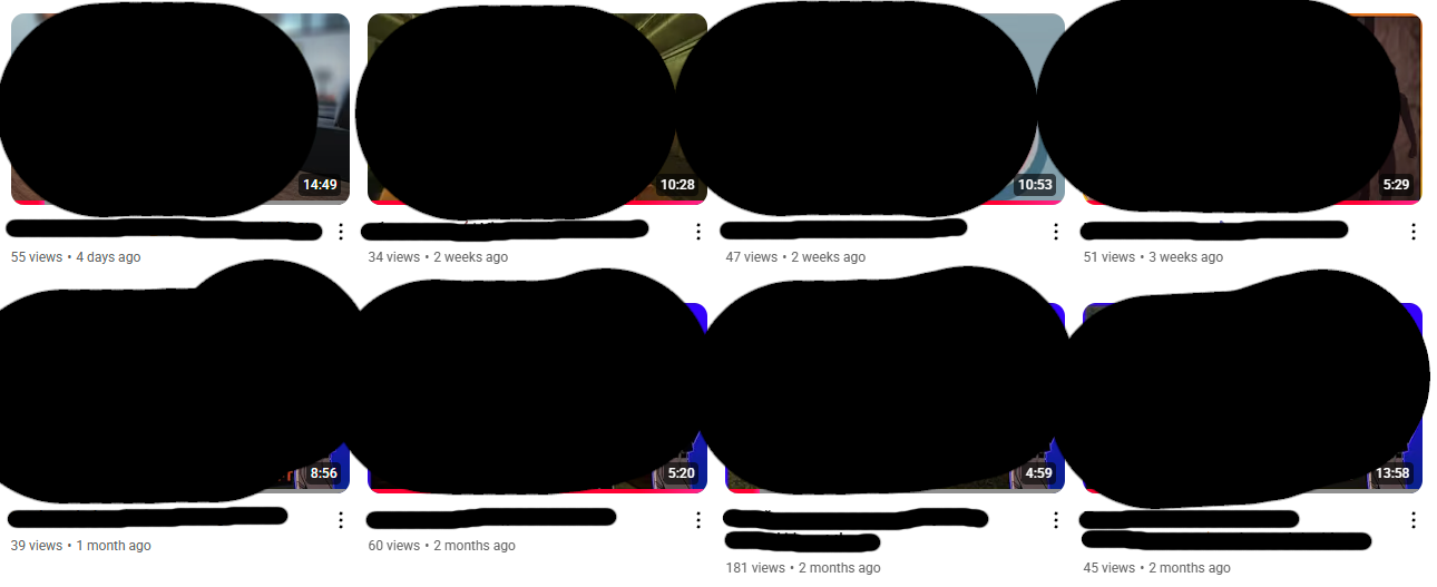 Сделаешь 1 видео, потратишь на него 20 часов работы, а оно 15 просмотров собрало, делаешь еще 1-2 - тот же результат, и всё, ебалось оно в рот, интерес пропадает.