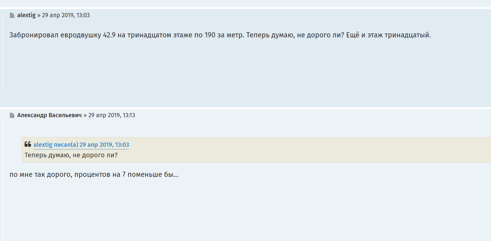 >>2360801 >Ликвидность же даже хуже будет Хуй знает, 45 метров двушку можно будет сдать семье с ребенком, студию в 22 метра ты им не сдашь. >Так я и пишу же что разница по моим прикидками максимум 15-20% Боюсь что эти 15-20 при +- одинаковой площади, а не при разнице в два раза за те же деньги.