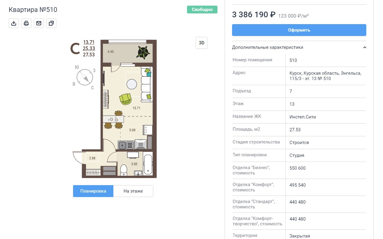 >>2358806 >ещё поживился квартирами в Инстепе Очень хорошо поживился, наверное. Совершенно случайно сохранился скрин от декабря 2023 года. Инстеп-сити на Энгельса. Строящийся дом, какая очередь - хз. 123к/м2. Сейчас от 122(IV 2026) до 146(III 2025) для студий в зависимости от срока сдачи. Если что в Курске и подорожало, то только вторичка, просто подтянувшись за первичкой из-за отсутствия льготных ипотек.