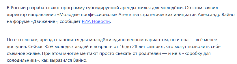 Так это я к чему - сейчас у нас тоже кризис, гойда и ставка 20%. Хуснуллин говорит, что в 2027 году нового жилья вообще не будет. И если такое продолжится еще несколько лет, то может ли это повлиять на цену аренды? Взлетит ли аренда еще в несколько раз? В ДС все равно ведь будут ехать. Как из замкадья, так и из всяких там таджикистанов и узбекистанов. А еще когда СВО закончится, то люди потеряют работу на оборонных заводах и тоже потянутся в ДСы.