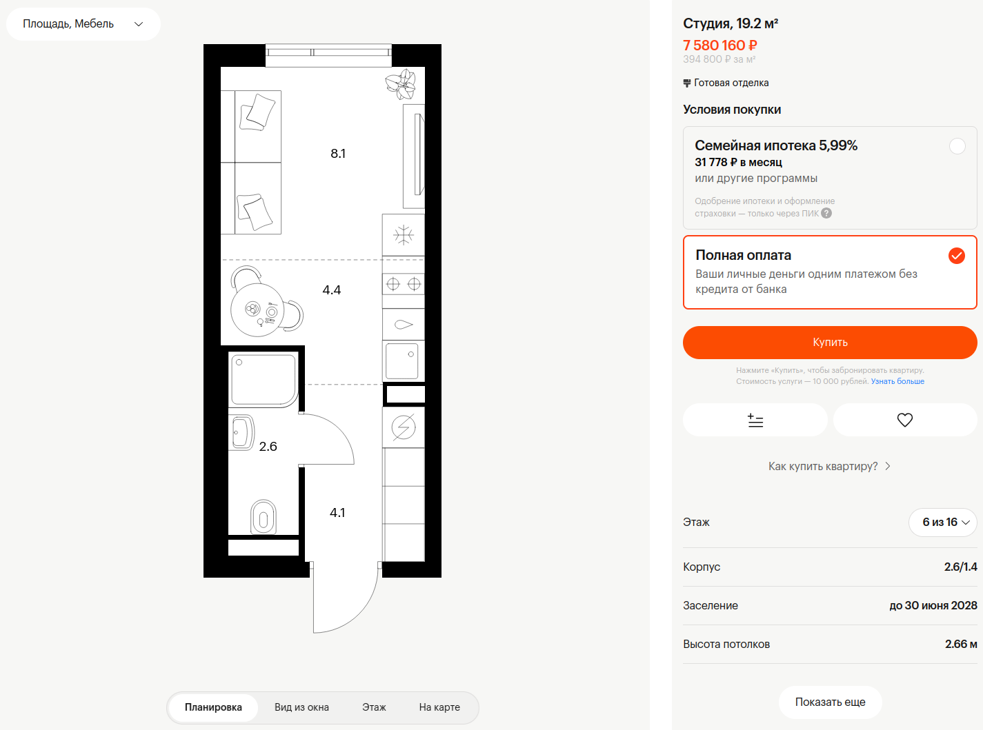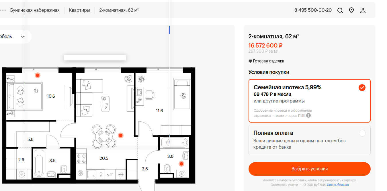 2) Берем семейную ипотеку от 6% до 23% с ценником 6 миллионов рублей на максимальный срок. Уже можно позволить себе что-то возле МКАДа