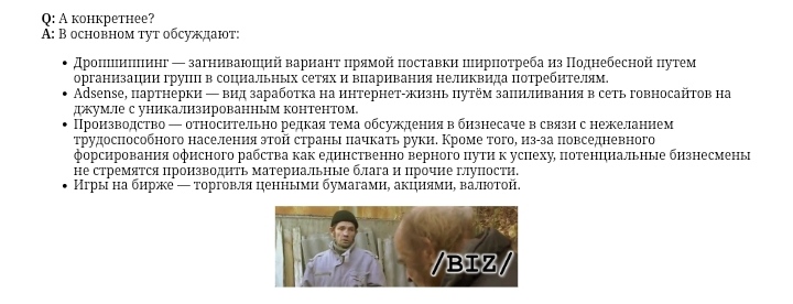 Блять, полная доска мамкиных бизнесменов и ни одного реального человека у которого хотя бы кто-то занимался цветами. Зато криптанов как говна, каждый второй инвестор, лендлорд, банкир, селлер, тьфу блять, /биз 2025, итоги.