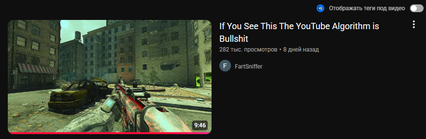 Ну и в целом автору нужно держать в уме, что ютуб сравнивает успешность видео внутри тем и, соответственно соотнесённому успеху, выдаёт показы. Если видео говно и неинтересное, то просмотров не будет. А сейчас пыниксов, которые делают каналы про загнивающий запад, очень много.