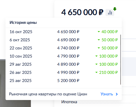 >>2404986 Бро, у меня мухосранск побольше но это ничего не меняет, то что объява снимается не говорит о том что что то продали. Я виду хату с 22 года, которая изначально продавалась за 1,5кк, пропадала и заново появлялась, сейчас 3,5кк. Как ты понимаешь за 3 года выросли лишь запросы владельца, а реальных денег там все так же нет. То есть цена растет, но вот покупают ли реально это вопрос. Но по льготным ипотекам в целом люди могут брать, если у вас вторичка под нее попадает. Многие продающие просто морально не могут на рыночную цену выйти, им сбросить 10-20% как себе ногу отпилить. А вот подержать цену когда у тебя инфляция обесценивает это вроде ты и не обосрался с активом.