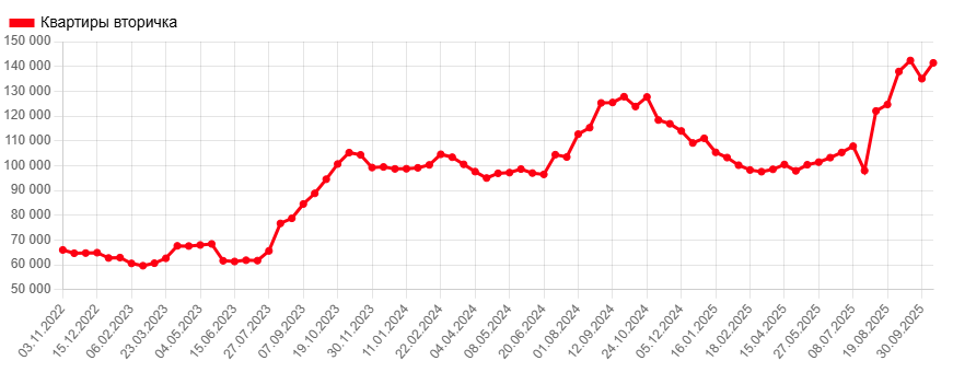 >всплеск отложенного спроса - квартир станет меньше С хуя ли их станет меньше, если спрос на новостройки в 2025 году рухнул на 30%, а ввод только на 14%? Это мы даже не учитываем не распроданные в 2023-2024 году метры, и то, что в 2026 и 2027 годах так-то тоже что-то будет сдаваться.