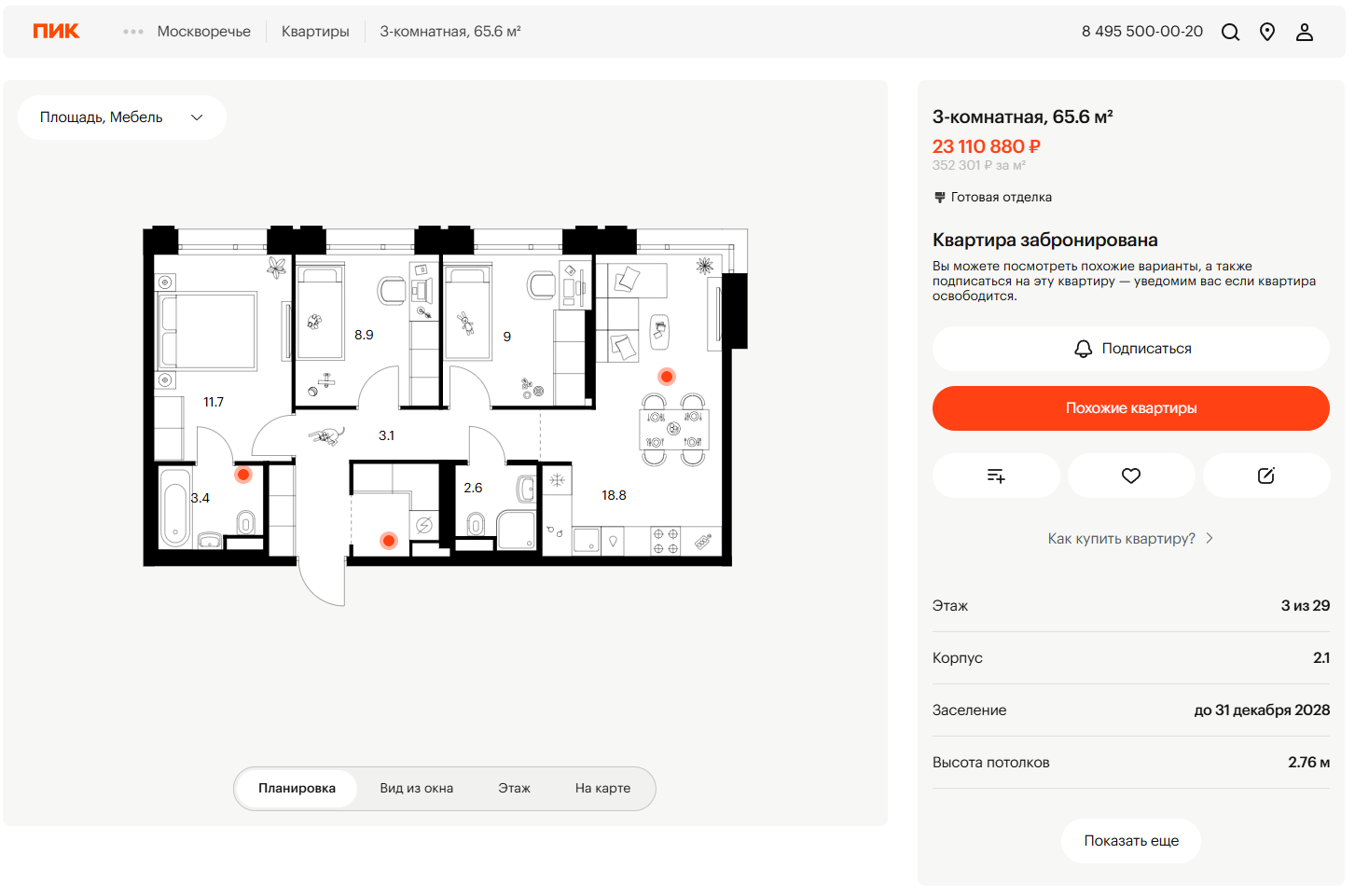 ПИК уверенно стартует с новой очередью проекта «Москворечье» Из 110 квартир, которые бросили на прилавок, уже половина забронирована, хотя ценник демпингом вообще не пахнет — 391 тыс. руб./кв. м. Нельзя сказать, что новый корпус как-то перегружен архитектурными излишествами, как будто его немного покусала реновация, но пипл хавает.