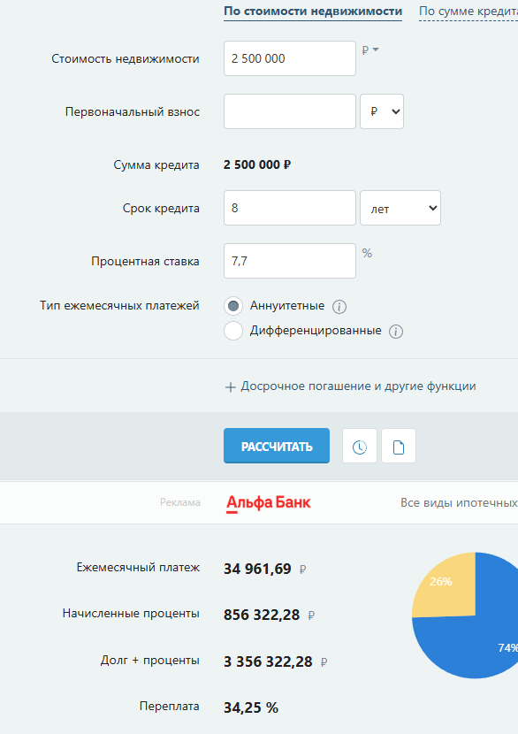 >>2414753 Я это описывал ранее, повторю и сейчас. Открой калькулятор и посчитай доходность конкретно в моем случае. 70к инкам, отсюда вычти 35к на ипотеку и остаток подели на первоначалку в размере 3кк. Какая выходит годовая доходность? Добавь сюда что это не купил и забыл, а остается еще сам актив, который имеет свою стоимость. Т.е. помимо того что хата литерали выходит бесплатная, свою зпху я не трачу и откладываю что в инвест, что на вклады, что на роллы. Да, я понимаю мне пиздец повезло что не слушал всяких уебанов про крах рынка, пузырь, методику правды256 и прочий кал. Взял и залетел в льготку под вкуснейшие 4,7%.