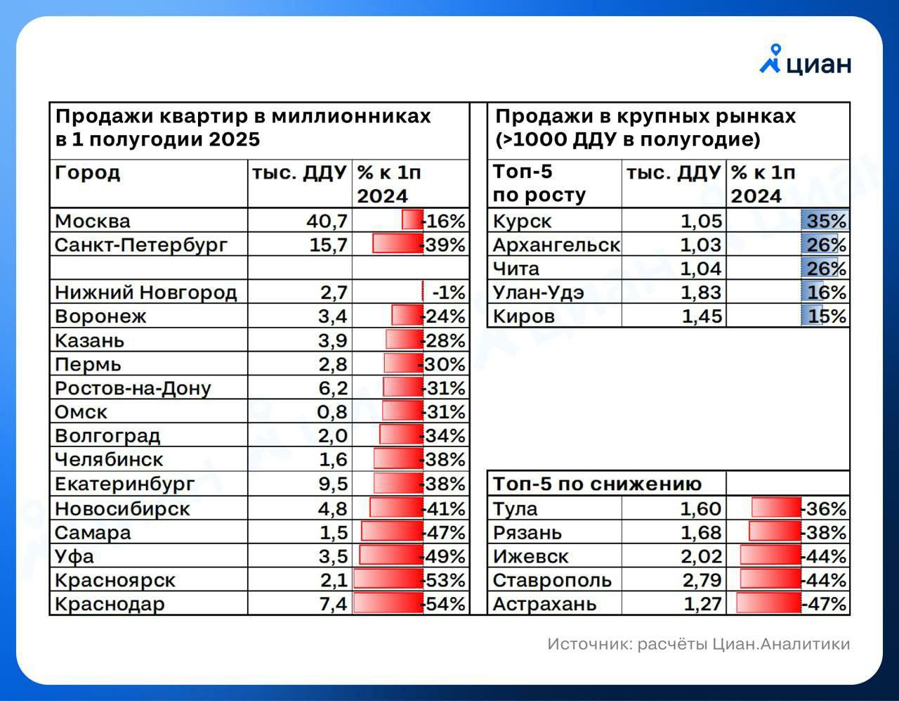 >>2422361 >Просто хочу разобраться крах бетона уже наступил? Статистика объявлений на Домклик показала, что средняя цена предложения на рынке вторичного жилья РФ в сентябре снизилась до 131,9 тыс. руб. (со 132,6 тыс. руб. в августе), соответственно, соотношение стоимости предложения и сделки тоже несколько уменьшилось — с 13,5% до 12,3%.
