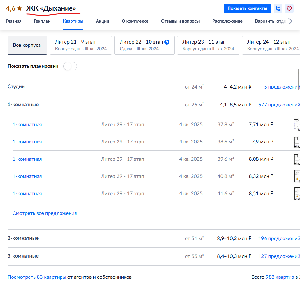 Если планировали купить вторичку, из-за историй с бабками передумали и теперь смотрите на первичку, подумайте ещё раз. Лучше положить котлету на депозит и ещё пару лет покопить, тем более что проценты позволяют (истории про "заморозку депозитов" это ещё один прогрев от застройщиков, вас пытаются в эмоциональное состояние вогнать, чтобы обезжирить). Когда застройщики сольют настроенную первичку, они позволят внести изменения в законодальство/правоприменительную практику, рынок вторички восстановится, цены пойдут вниз. То, что сейчас происходит, это классическая pump & dump схема, просто вместо актива — недвижна с низкой ликвидностью и очень хуёвыми перспективами. Все спальные районы с человейниками в 28 этажей, которые они понастроили, превратятся в гетто, и единственное, для чего они годятся — это временное проживание, перед трамплином в Москву и дальше в развитые страны. Не вляпайтесь в говно. Учитесь считать. Это игра кто кого пересидит, и застройщику скоро будет очень плохо. Нужно его додавить и получите хорошие цены. А пока копите деньги.
