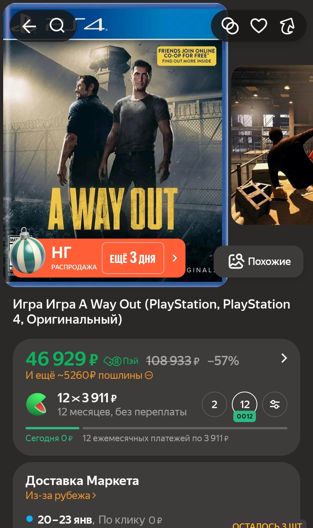 >>2438257 Ты как себе представляешь среднего потребителя маркетплейса, покупающего диск со старой игрой по 20к + таможенная пошлина? Когда рядом ему показывают цифровой код.