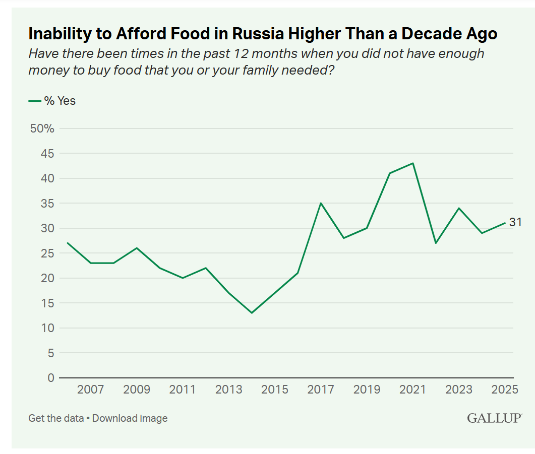 >А у тебя типа значит должно было быть почти втрое тяжелее. Так и есть, можешь гэллаповское исследование почитать, 30% россиян заявляют, что денег не хватает на еду.