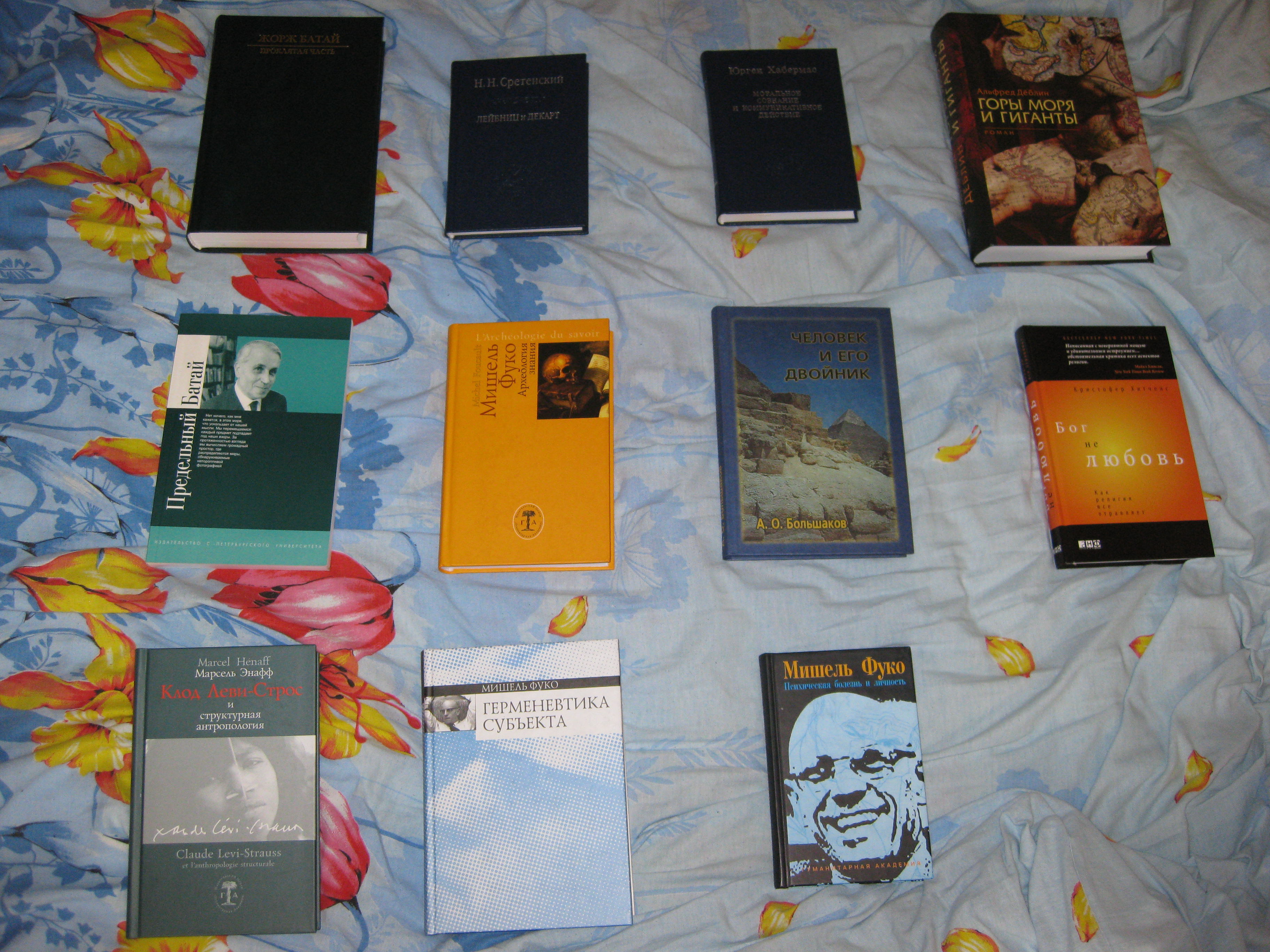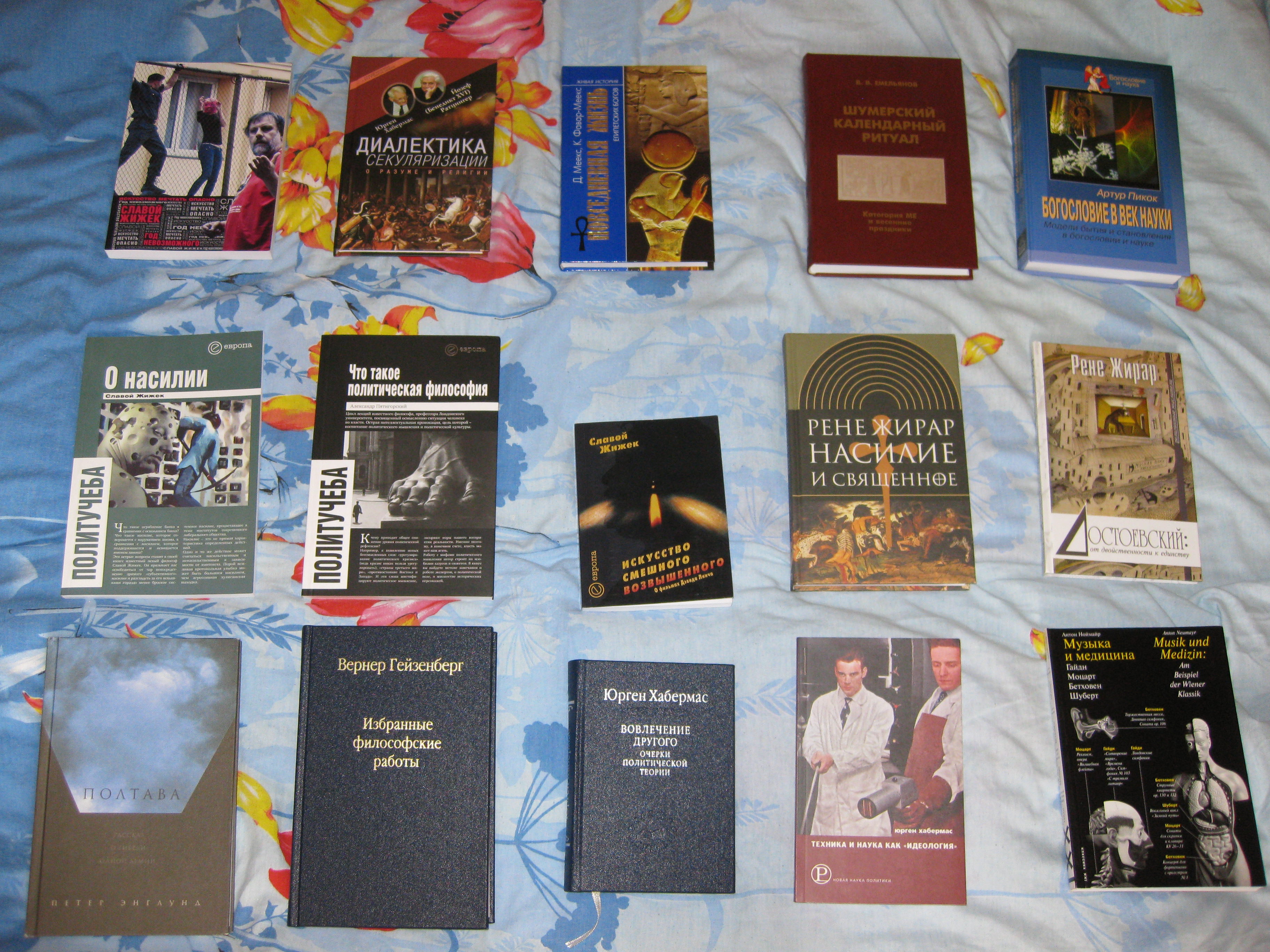 Уже в пути книги Жирара, Жижека, Хабермаса, Пятигорского и несколько исторических книг, Наймар Музыка и медицина, Полтава, что-то про первую мировую и т.д.
