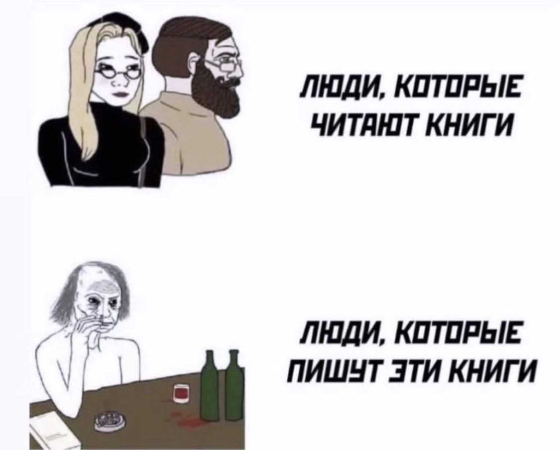 >>1002752 (OP) >Каким бы хорошим не было произведение, раскрытие лица автора может сильно испортить послевкусие. Совершенно нет. Мухи... то есть книги отдельно, личность автора отдельно, а лук его лика вообще побоку. Потому что пик >>1003083 верен на 95%. >>1003084 Инцелы не женщины, так вернее. Бабы они еще те (в литературном значении слова, лол)