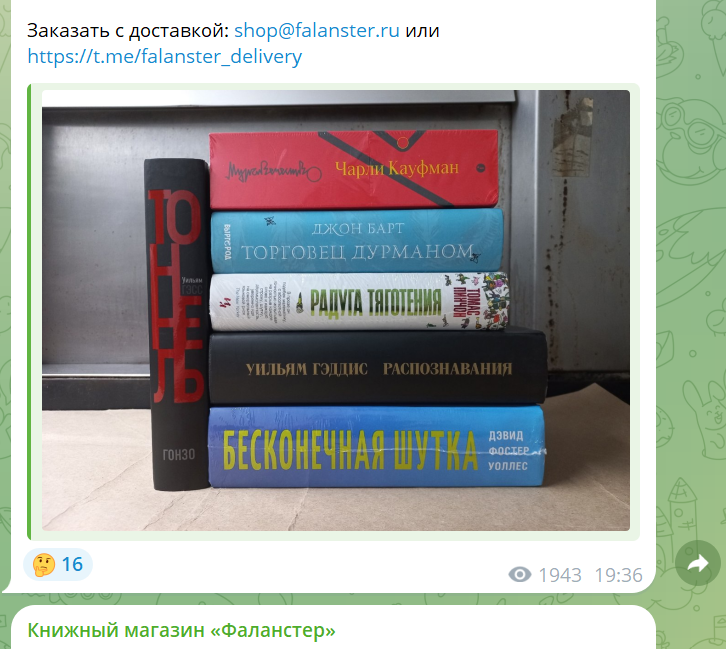 >>1025749 Нет, получил за подписку на бусти издательства Конгресс W. За 500₽ в месяц получаешь каждую их новинку плюс секретные книги только для подписчиков. В этом году такой двутомник и оказался секреткой, все в ахуе, конечно, от неожиданности. В продаже он появится только через год, и то не очень большим тиражом, насколько я понял, пока в обороте около 300 экземпляров подписчиков. >>1025750 Нет, не я. Но в принципе, иногда раздумываю толкнуть ее штук за 12 попробовать, а через год купить в свободной продаже, но как-то гадко