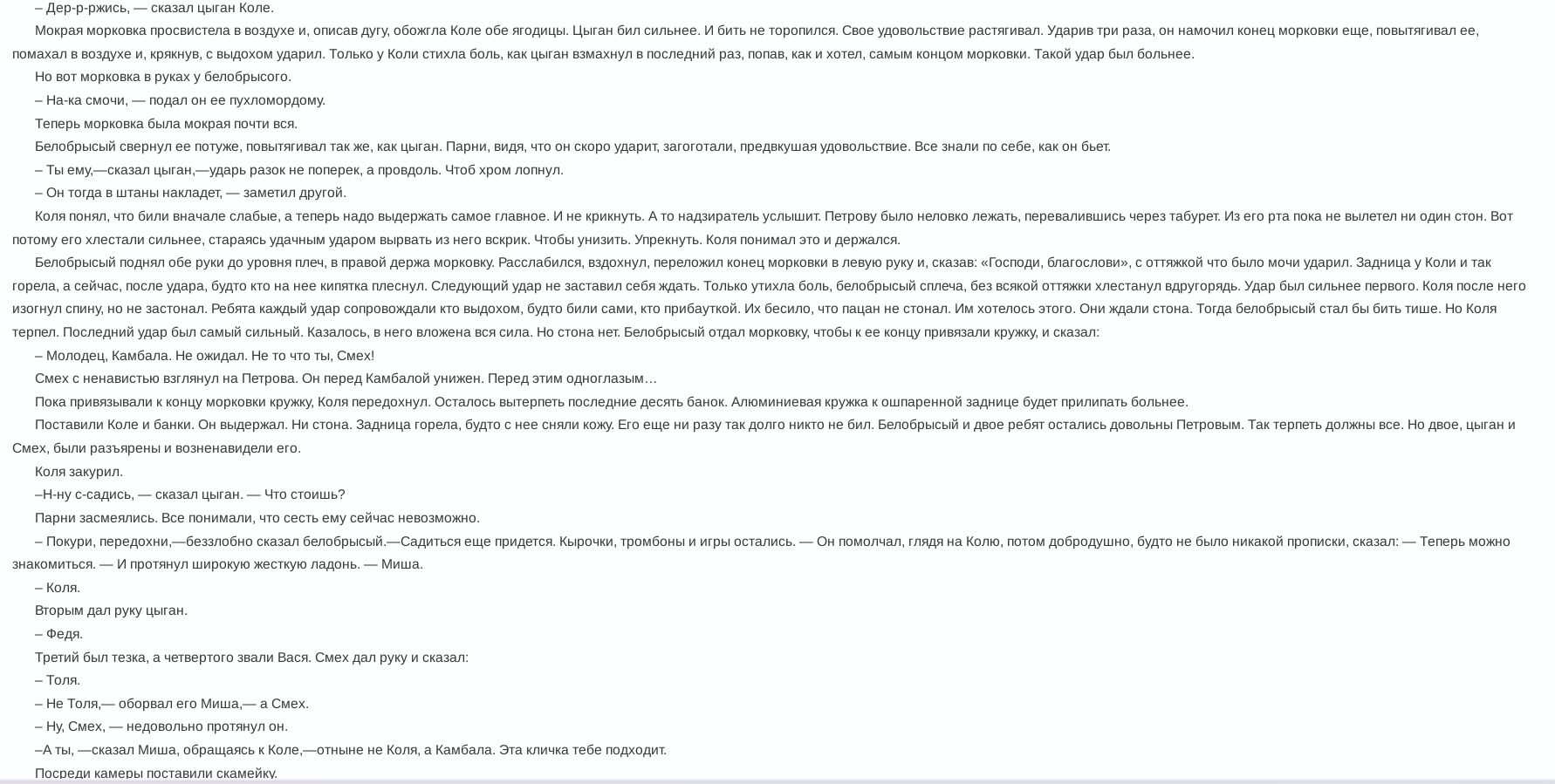 >>1009370 Заинтересовали отрывки, прочитал. И раньше тоже про эту книгу слышал, да чёт как-то откладывал всё. Ну, такое себе чтиво... Прямо уж жести-жести не обнаружил. Ебанутые малолетки издеваются друг над другом - вот так новость! Так и сам ГГ тоже малолетний дегенерат, которому и сочувствовать не получается. Какая-то книга-зоонаблюдение просто. Вот я даже не понел нахуя он воровал. С этого даже и профита не было, считай. Себе три копейки, а то знакомому вещи отдаст, с которого их и не спросишь потом. Или велосипед, который даже цыгане не берут. Кубок нахуя из школы пиздить? Учителя до полусмерти отделали, шакалята. Фу блядь, фу нахуй! Ну и нашёл, чего искал. Молодец, хули.