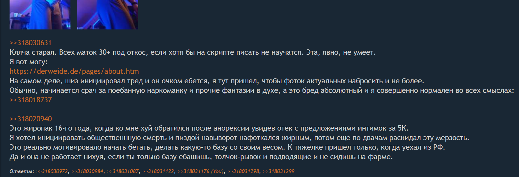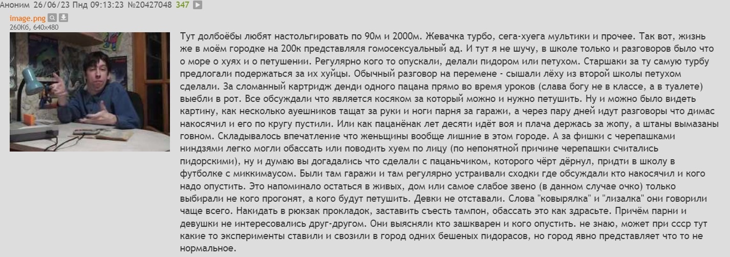 >>1012589 https://smotrim.ru/article/3439089 >Касательно же анонимусов-убийц Могу ещё один случай добавить. Сидела на бордах и бывала у нас в постмузачерской конфочке. Но хватало и противоположных исходов. Тот же знакомый тебе Леонидос. Писал токсичные и злобные пасты, троллил 24/7, но в результате стал программистом и уехал в Нидерланды.