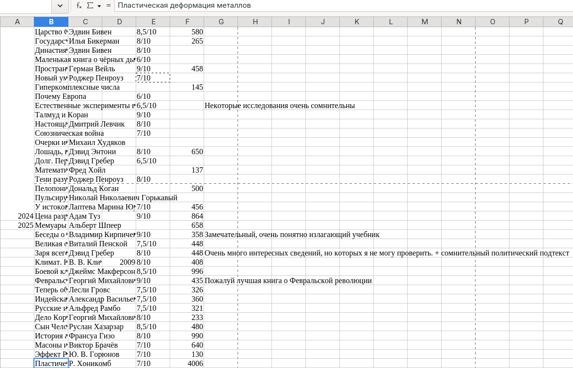 >>1013696 (OP) >1) Сколько в средне читаешь книг в год? С 2013, как завел ЛЛ и стало возможно подсчитывать - примерно 150 ежегодно. Была пара лет всплеска и пара лет проседания. >2) Сколько книг прочитал в 2024 году? 154, из них 51 новая, остальное перечитанное. >3) Пользуешься ли какими-либо бук трекерами? нужны ли они вообще? Если хочешь много читать и тем более перечитывать - да. Юзаю свой мелкоканал в телеге и лайвлиб, собственно, плюс собираю электронную библиотеку из того, что можно найти в электрухе, тоже своего рода трекинг. >4) сколько в среднем часов читаете в день Хз, сложно посчитать. Часа два набирается железно, это завтрак-обед-ужин как раз. В среднем наверное будет около трех. Подсчет по книгам за год дает цифру 2.5-3 часа ежедневно. >какую литературу читаете в основном? Все что угодно. Последние десять штук: - фантастика - научпоп - фэнтезя - фэнтезя - советщина - классика - классика - современный детективчик - повседневщина - советщина