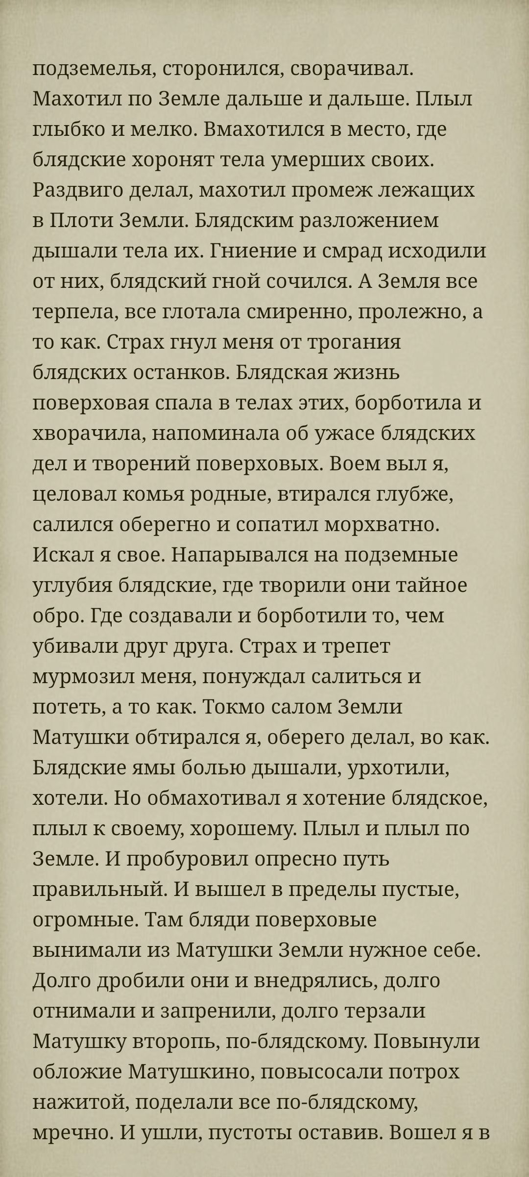 >>1021900 > Ну и в целом, я расчитывал на что-то вроде эпоса (сам Елизаров говорил, что несколько раз перечитал Тихий дон, когда писал Землю) Кажется, "Земля" задумывалась как трилогия. И вышедший 800-страничный кирпич - это первая часть с подзаголовком "Землекоп". Планировалось продолжение, но походу Михал Юрич устал от темы. Говорил ещё в интервью, что тема сожрала сама себя. Поэтому он в итоге просто забил хуй.
