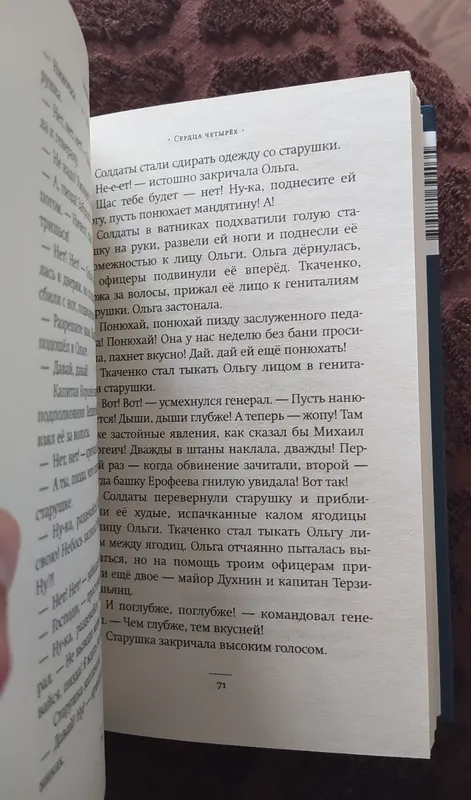 Понравилось, как в конце Марины главная героиня потеряла индивидуальность, а потом и все остальные. А в целом норм порнушка, ничего особенного. Пожалуй мне у Сорокина от и до только сборник Первый субботник понравился, я от него в голос орал, а иногда и крипота наваливала. Хз что дальше читать у него. Трилогия как-то не прельщает, там видимо мало чернухи будет и я не люблю антиутопии. Сердца четырех наверну может еще и закончу с Сорокиным, не совсем мой писатель по количнству годноты и уныния. Предпочитаю Масодова.