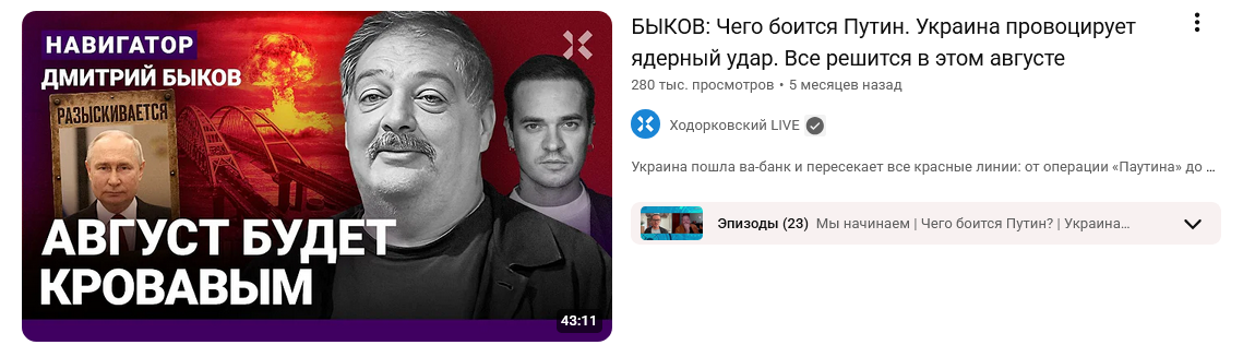 Ну и, конечно, форсился тогда отрывок про НУ ВОТ КАКОЙ-ТО ПОРВАННЫЙ, ДЕЙСТВИТЕЛЬНО, НАЗОВЁМ ЭТО ПУКАН, ДЕТЕКТЕД. Сейчас, конечно, эпоха прошла, Быков из смешного дурачка превратился в совсем уж какого-то мерзкого персонажа, а в тредах больше мусолят унылые демшизовые тейки с релокантских прямых эфиров, в которых чего-то оригинально смешного нет, скорее противное.