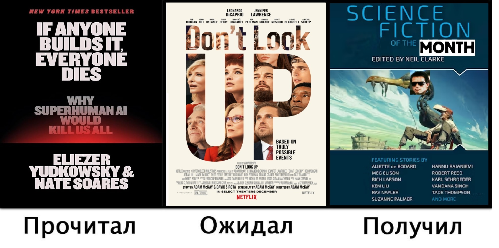 Теперь, пораженный тем, как складно тарахтит чятГПТ, Юдковский повернул весь свой карманный НИИ на исключительно пропагандистскую работу по донесению ужасов Сверхинтеллекта. Так появилась, и почему-то будет выпущена издательством АСТ, книга "Если кто-либо это построит, все умрут". Это попытка объяснить тупому обывале массовому читателю, что мы вот-вот умрем от злонамеренного АГИ. Она буквально построена, чтобы убедить среднего читателя, не знакомого с догмами Майндсета, в логичности этих догм. Обернуть человека в свою веру.