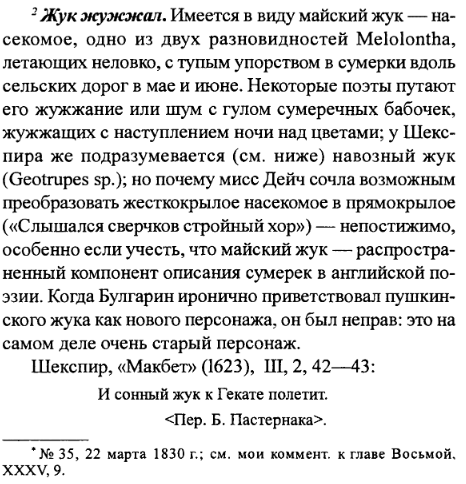 При этом кажется иногда, что Набоков играет с читателем, когда, например, приводит на пару страниц комментарий на фразу "жук жужжал" с цитатами из Шекспира, Коллинза, Макферсона, Жуковского и Шатобриана.