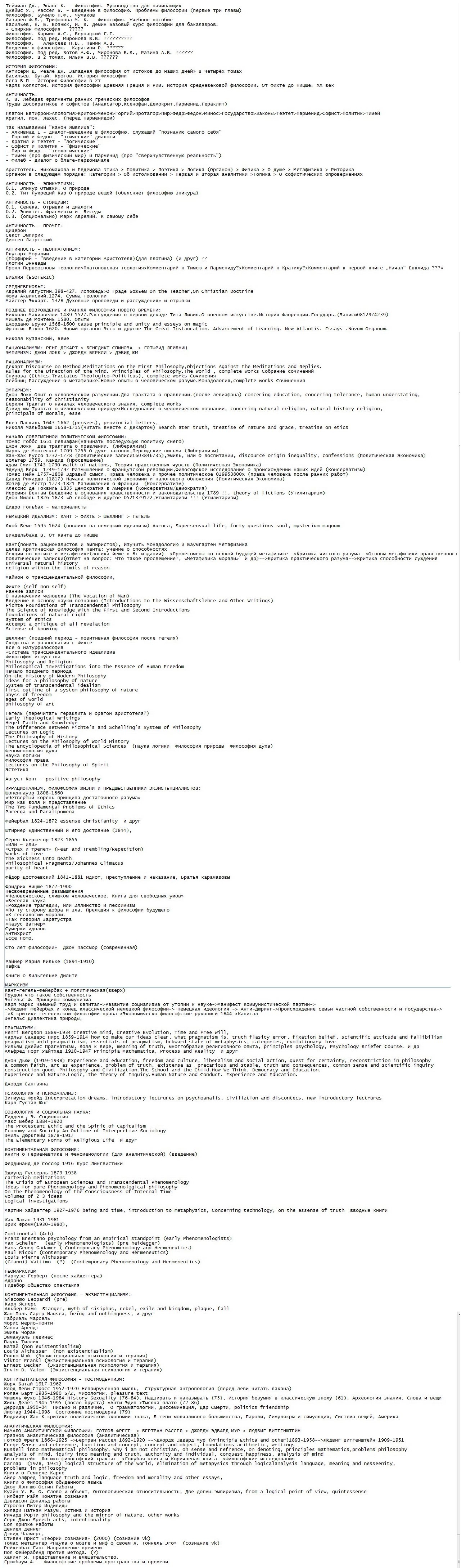 3 - философия, в качестве базы воспользовался 4chan lit philosophy project и взял рекомендуемые книги от aлександра шадова