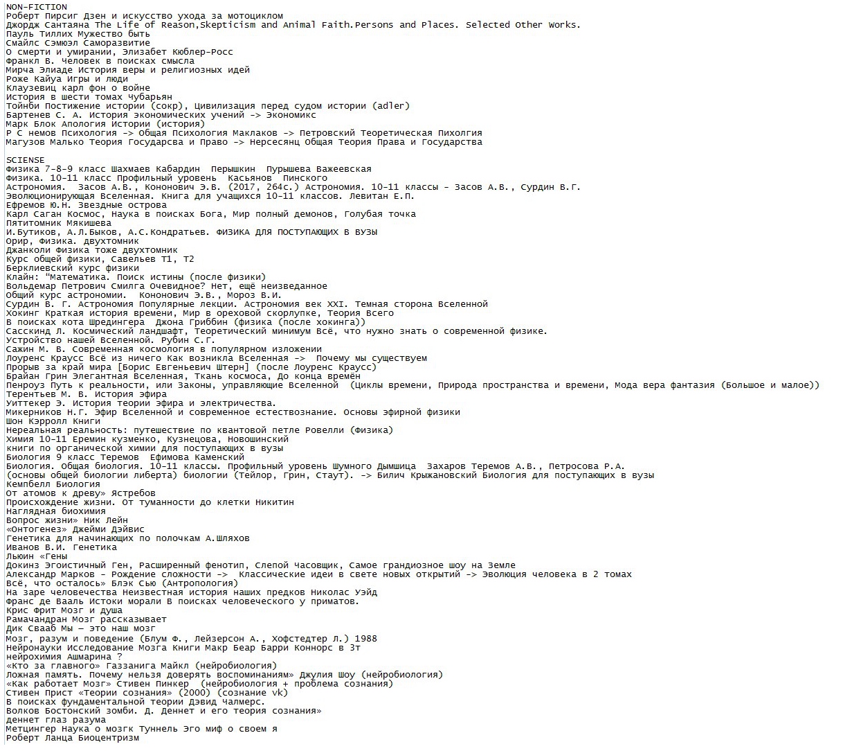 Прочитал за жизнь не так и много, наверное и 200х книг не будет. Проходных там было штуки 3-4, которые дочитывал по юности лет, а сейчас бы плюнул. Ну вот это и будет мой топ 200 изи. При этом 70% из топ-двача (на пиках выше) я читал, и апппрувед. А вот как я выбирал книги, это вообще фантастика. То на даче просто брал рандомную книгу деда, так же дома на антресолях на угад брал и попал, например, в Стейнбека (ну это топ и топов - золотая коллекция вообще).