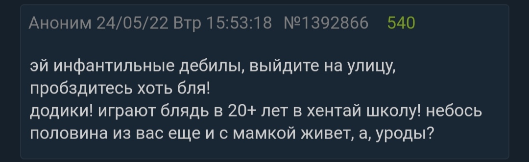 — Как! Ты не знаешь, кто такая Лора? — даёт ему перманентный бан по подсети и ставит на пост метку о бане.