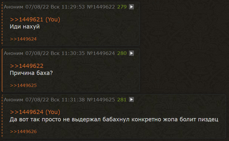 >>1528591 Может и из /brg в целом, может из /b совсем залётыш. И до этого такое происходило, так что, в принципе, ничего нового, лол. Так уж исторически сложилось, что в РП треды любят залетать и вайпать/семёнить/жирнить и прочая.