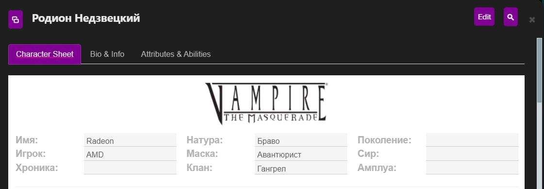 >>1529148 > Если серьёзно, то я распылил свою личность на многих персонажей Это почти у всех так. Можно взять ОДИН аспект своей личности (например тягу к вниманию, к эпатажу), сделать её стержнем персонажа, а остальными чертами обрасти по мере игры.