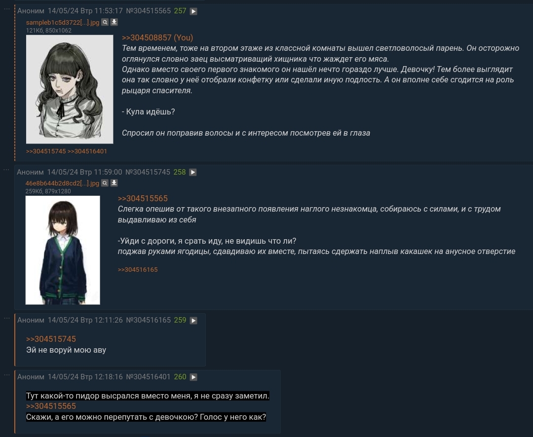 >>1528663 яойные фанфики. в одном из них у главгероя два любовных интереса мальчик и девочка, побеждает мужская дружба. а в другом я сделал несколько линий, но строго девочки с девочками и пацаны с пацанами.