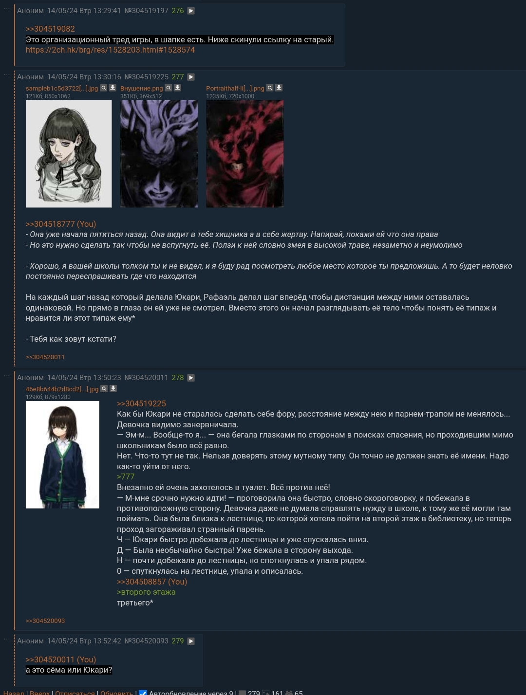 >>1528481 Ну к слову. Я много работаю и потому играть могу обычно только на выходных или вечером. Если не состыкуемся по времени, а ролевой хуй будет стоять - есть вариант посоциалить с Такаши или на худой конец вкатиться в новый день. А мистика нагонит Яно, как только он хотя бы на секунду почувствует себя в безопасности... Шизотерик не приходит поздно, Фродо Бэггинс, и рано тоже не приходит. Он появляется в то время, когда положено. шизомистик