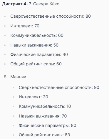 Теперь посмотрим на этих троих из Третьего, Четвёртого и Восьмого районов! Как мило, они решили поиграть в команду! Но запомните, девочки, здесь нет места для дружбы, ха-ха!