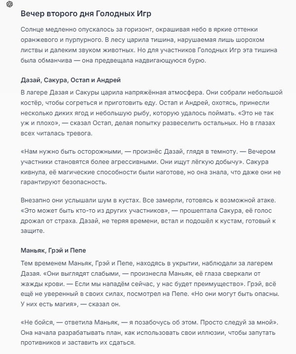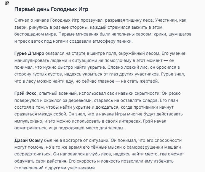 Дамы и господа, добро пожаловать на невероятное шоу "Голодные Игры"! С вами ваш ведущий, и мы готовы к захватывающему первому дню кровавого сражения!