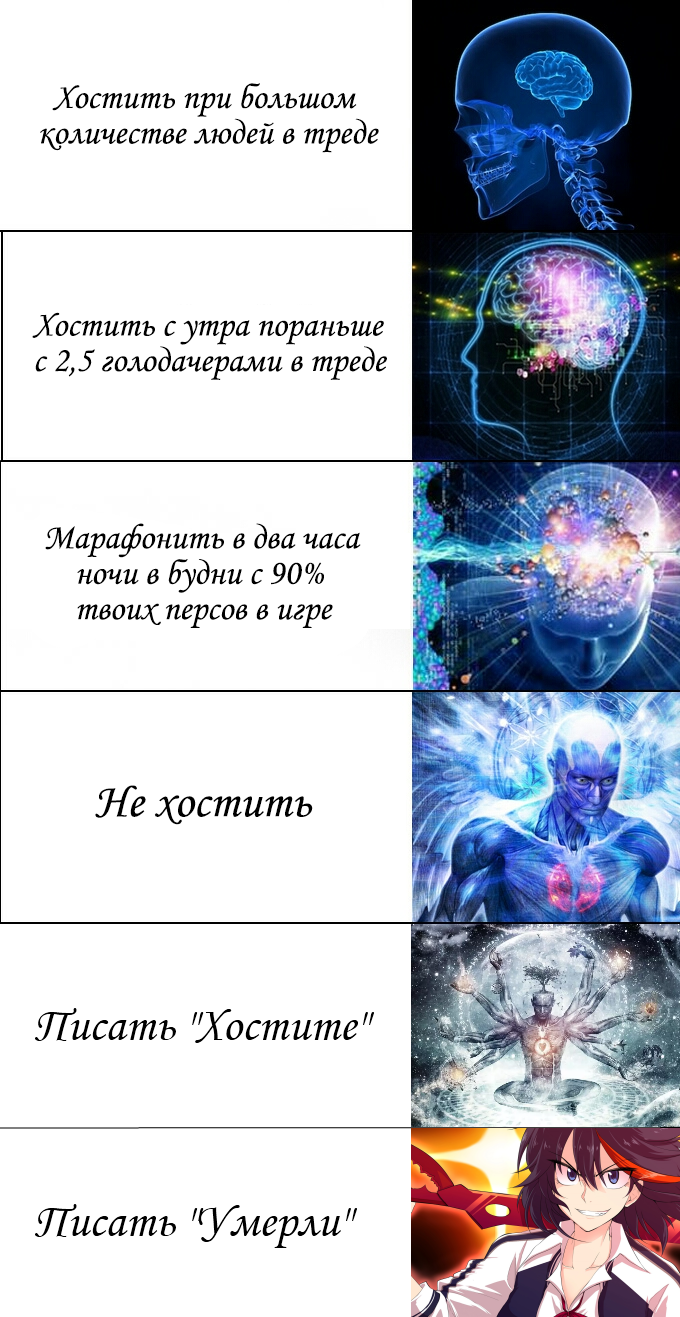 >>1541391 >Со мной ничего не надо делать, я сам с собой что нужно сделаю. Как скажешь. Ты взрослый парень, в конце концов, тебе решать. >Хорошо, что ни того, ни другого не будет. А если вдруг и будет, всё к лучшему. >Ну ты и кинул, самую грустную и эмоциональную композицию всех чаек, ты меня плакать заставить хочешь? Никакого злого умысла, просто настроение такое. Держи в следующий раз платочек под рукой. >Именно она. Кажется, запускали вместе с аниме, и кажется она уже померла. Помянем. Но это неточно. >Ага, не понимаю кто всерьез играет во все эти гачи по коносубам, оверлордам и т.д. Кстати, пробовал ради любопытства поиграть в гачу по Оверлорду - забросил через пару дней. >Я тоже пару серий посмотрел еще в онгоинге, но потом надоело ждать новые серии и я забил. Слышал, что там расширили канон и цикад, и чаек, закрыв некоторые дыры сюжета. Вот думаю посмотреть. О, если речь идёт о расширении канона и шаннона обязательно, то это уже интересно. Надеюсь, этому выделили достаточно экранного времени, а не пару туманных реплик за весь сезон. >Решил уменьшить потребление сахара, чтобы не убивать зубы. А чай без сахара я уже пить не смог, вот и перешел на кофе с молоком - вкусно, без сахара и бодрит. Предложил бы в качестве компромисса чай с молоком, но, чувствую, такое богохульство тебя не заинтересует.