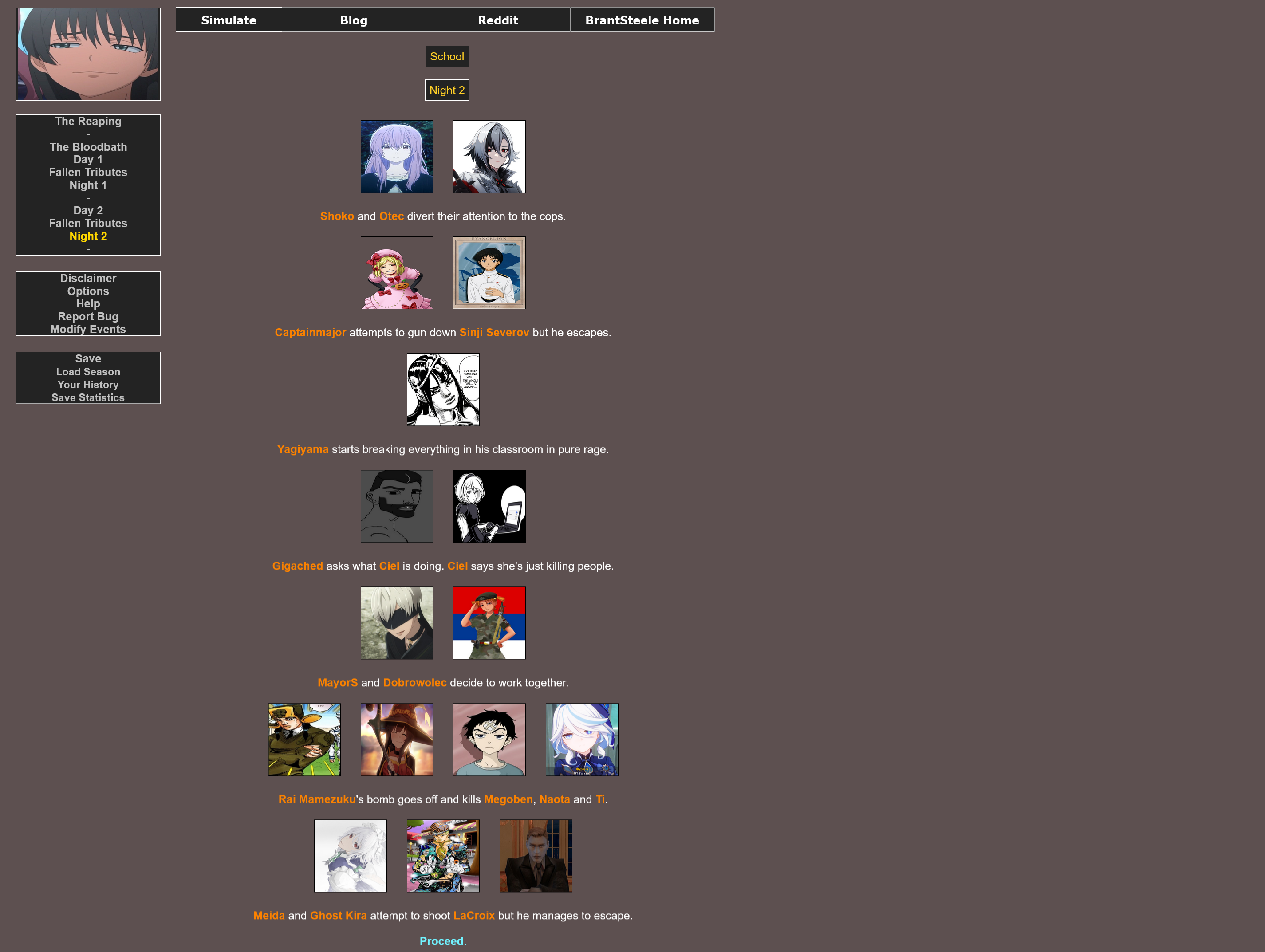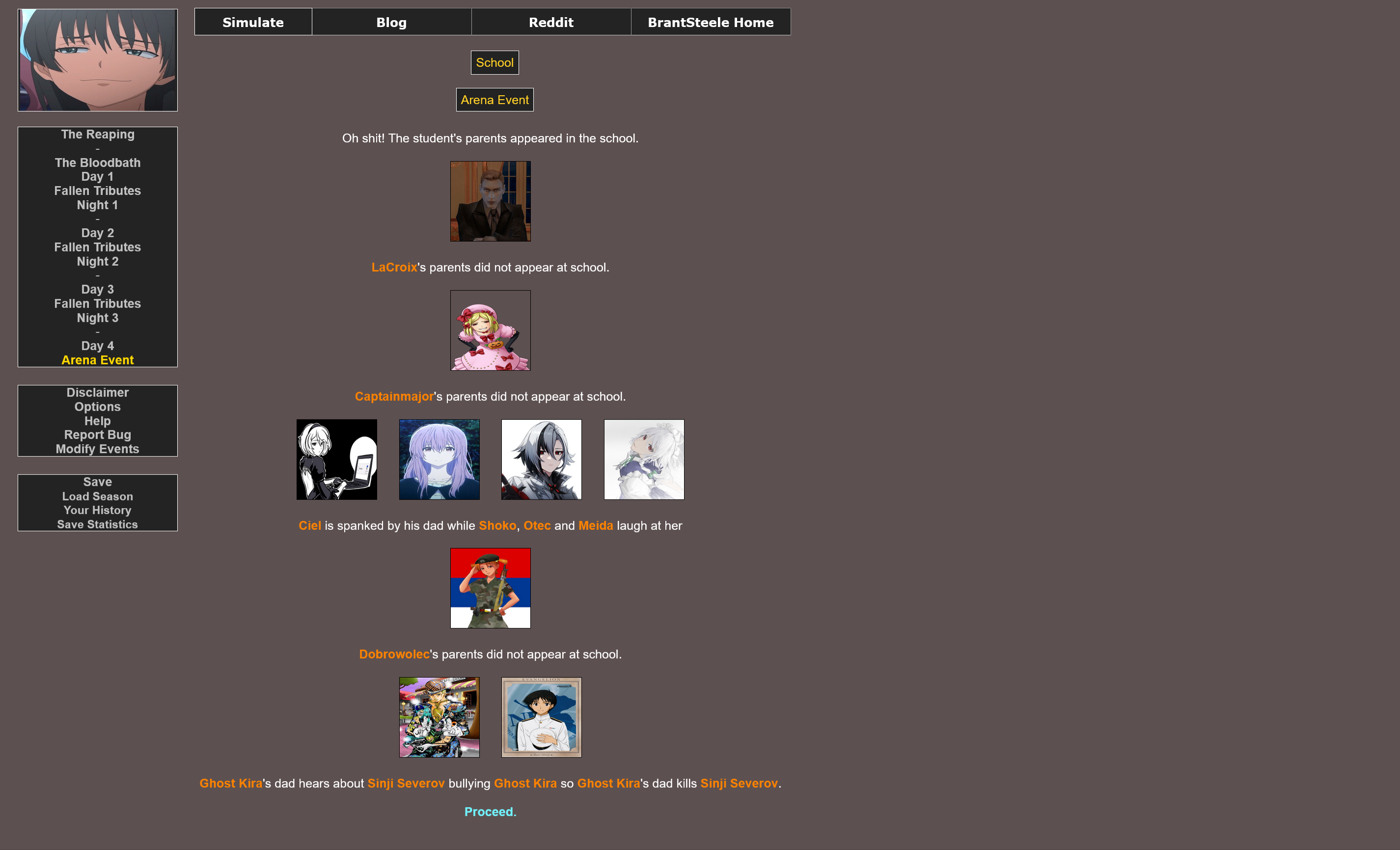 Мистическим образом(здесь явно задействовано могущественное таинство), горничная из особняка Тоно попадает в Голодные игры. Даже в такой ситуации, она остается оптимистичной, в её груди греется надежда вернуться обратно на службу, ведь кто еще будет заваривать чай госпоже Акихе?!