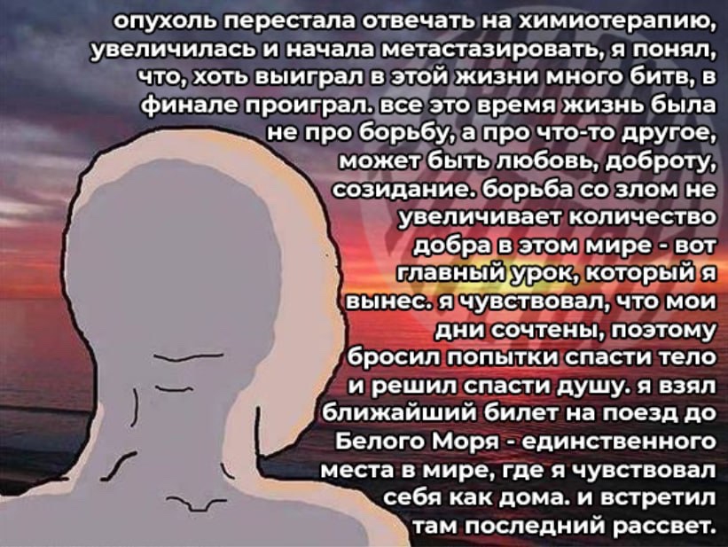 >>1541384 Со мной ничего не надо делать, я сам с собой что нужно сделаю. Хорошо, что ни того, ни другого не будет. Ну ты и кинул, самую грустную и эмоциональную композицию всех чаек, ты меня плакать заставить хочешь? https://www.youtube.com/watch?v=Rd5Vt_qct0s >>1541387 Именно она. Кажется, запускали вместе с аниме, и кажется она уже померла. Ага, не понимаю кто всерьез играет во все эти гачи по коносубам, оверлордам и т.д. Я тоже пару серий посмотрел еще в онгоинге, но потом надоело ждать новые серии и я забил. Слышал, что там расширили канон и цикад, и чаек, закрыв некоторые дыры сюжета. Вот думаю посмотреть. >>1541390 Решил уменьшить потребление сахара, чтобы не убивать зубы. А чай без сахара я уже пить не смог, вот и перешел на кофе с молоком - вкусно, без сахара и бодрит.