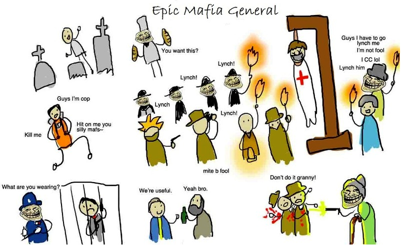На самом деле не столько играем, сколько отчаянно ищем олдов из Epicmafia, в которую играли в конце десятых здесь, в /b/ и в /vg/. Клересд, жирный Сэм - короче, все наши. Новичков тоже ищем, тут бы хоть кого отыскать.